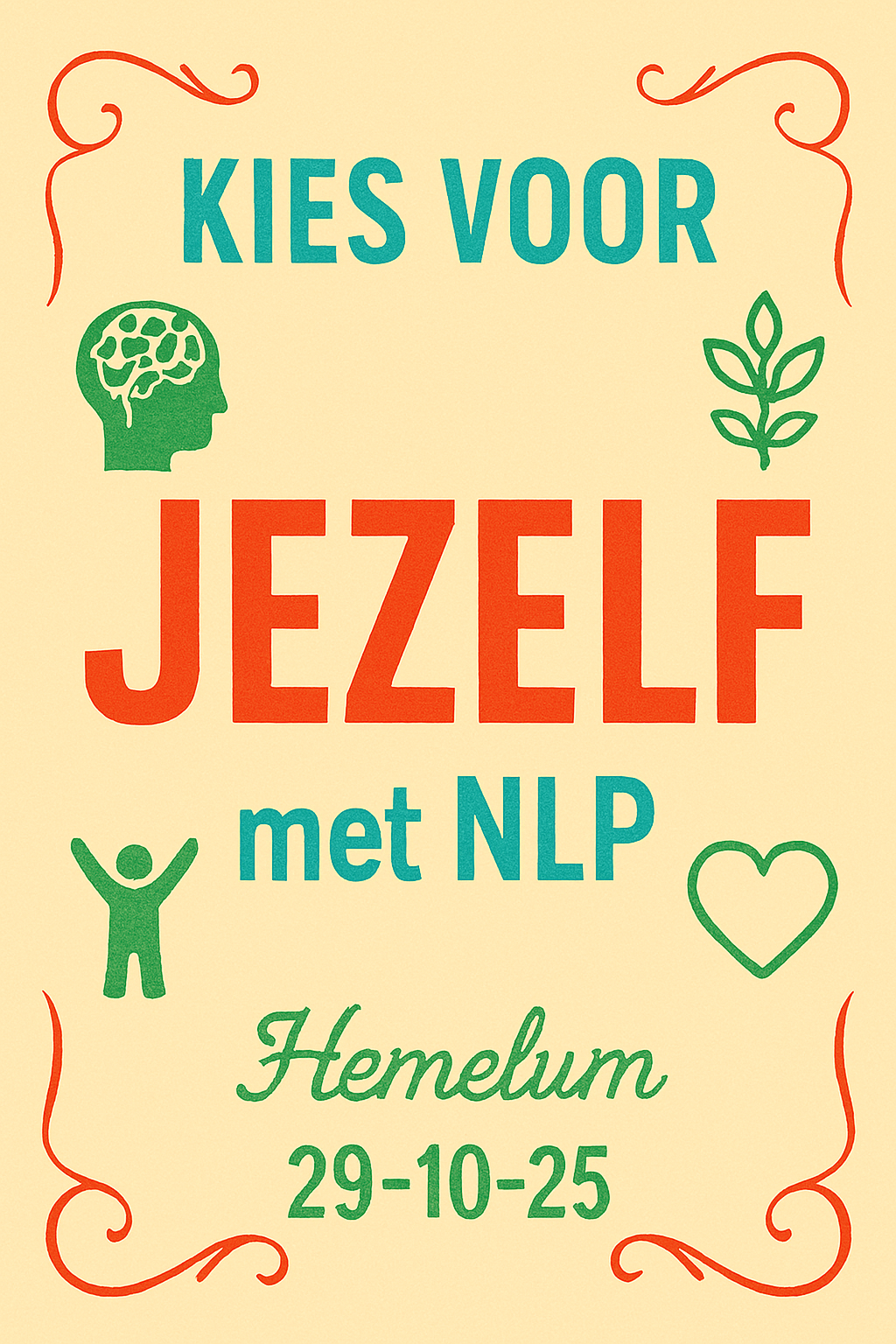Tijdens deze introductieworkshop maak je op een laagdrempelige en inspirerende manier kennis met NLP (Neuro-Linguïstisch Programmeren). Carmen van Manen-Baijanova (van NLP ART) en Wilco Miedema (SYNspiratie) laten je ontdekken hoe NLP helpt om jouw keuzes te maken die zorgen voor meer rust, richting en zelfvertrouwen.