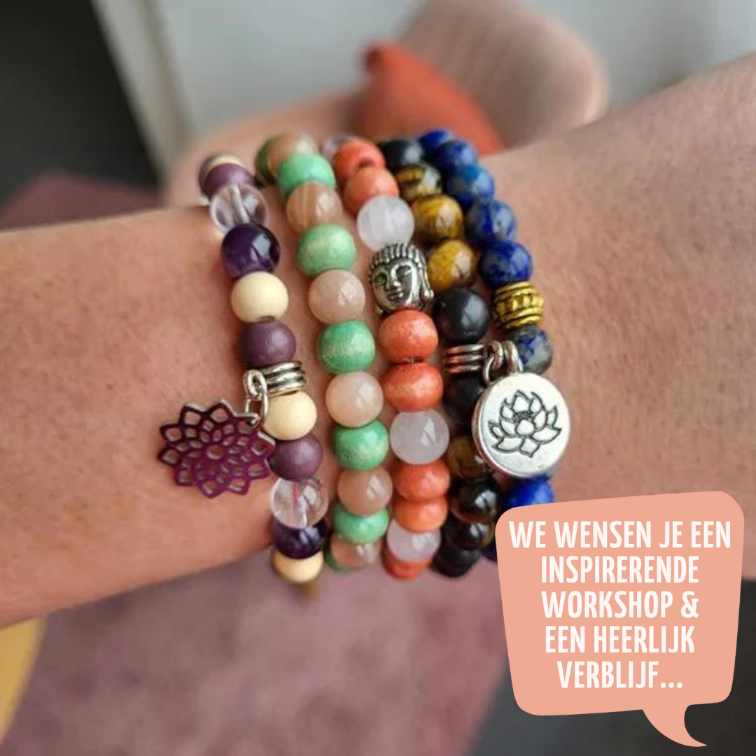 Ben je geïnteresseerd in de werking van edelstenen? Rianne Hoeksma van Jewels of Nature begeleid je in het maken van een unieke armband met edelstenen-, houten kralen en/of bedels. Op intuïtie kiezen en rijgen om jouw prachtige creatie te creëren. Met een mooie armband om de pols en alle ins en outs ga jij weer naar huis.