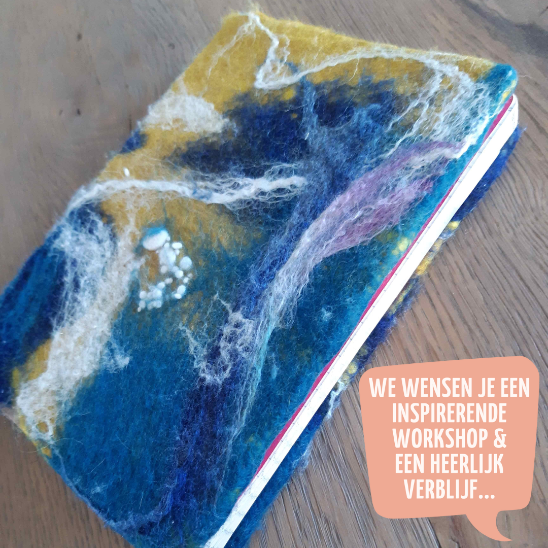 Je gaat een omslaghoes van vilt voor je notitieboekje of een ander boekje maken. Het formaat is ongeveer 15 cm x 20 cm. Neem zelf een boekje met een harde kaft mee of anders kun je bij Bianca voor 3 euro een boekje kopen. We maken van wol en vezels een unieke wollen omslag, dit voelt heel bijzonder en ziet er prachtig uit. Inclusief wol, gebruik van materialen, goede koffie, theeproeverij (ruim 25 soorten) en lekkers.