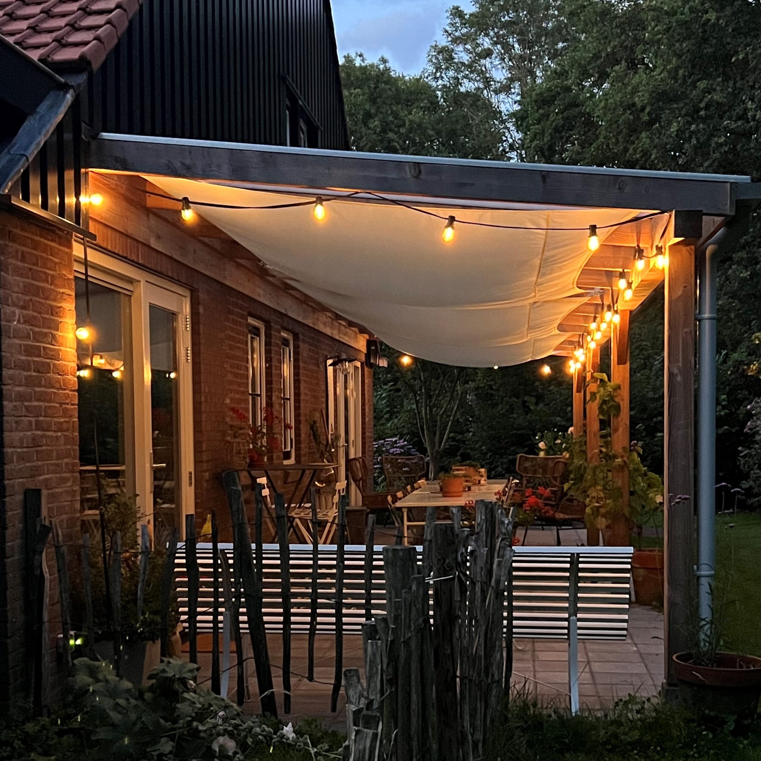 Bij aankomst tref je een schone, goed geventileerde accommodatie. Op warme dagen is het binnen heerlijk koel vertoeven. Op koude dagen is het in een mum van tijd aangenaam warm. Vroeg in het jaar zit je onder de overkapping voortreffelijk en in het najaar is het buiten in een vest nog lang goed vol te houden. Pak gerust een fijne plaid voor extra comfort.