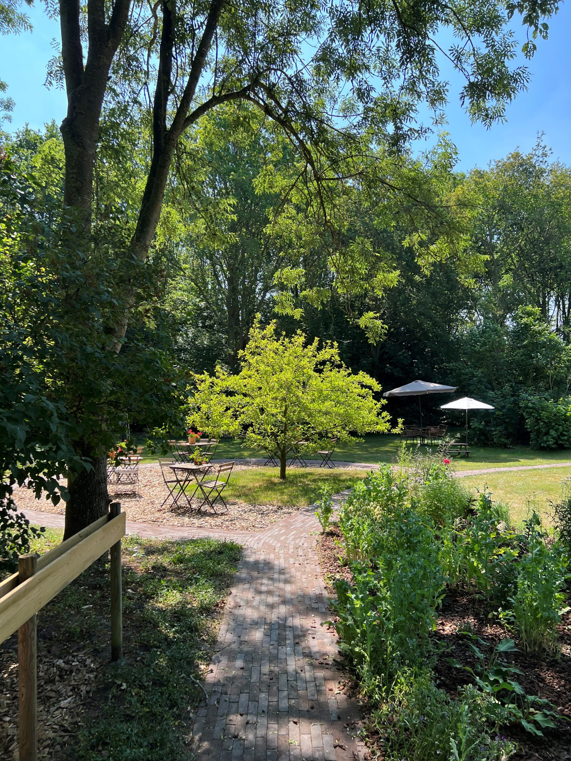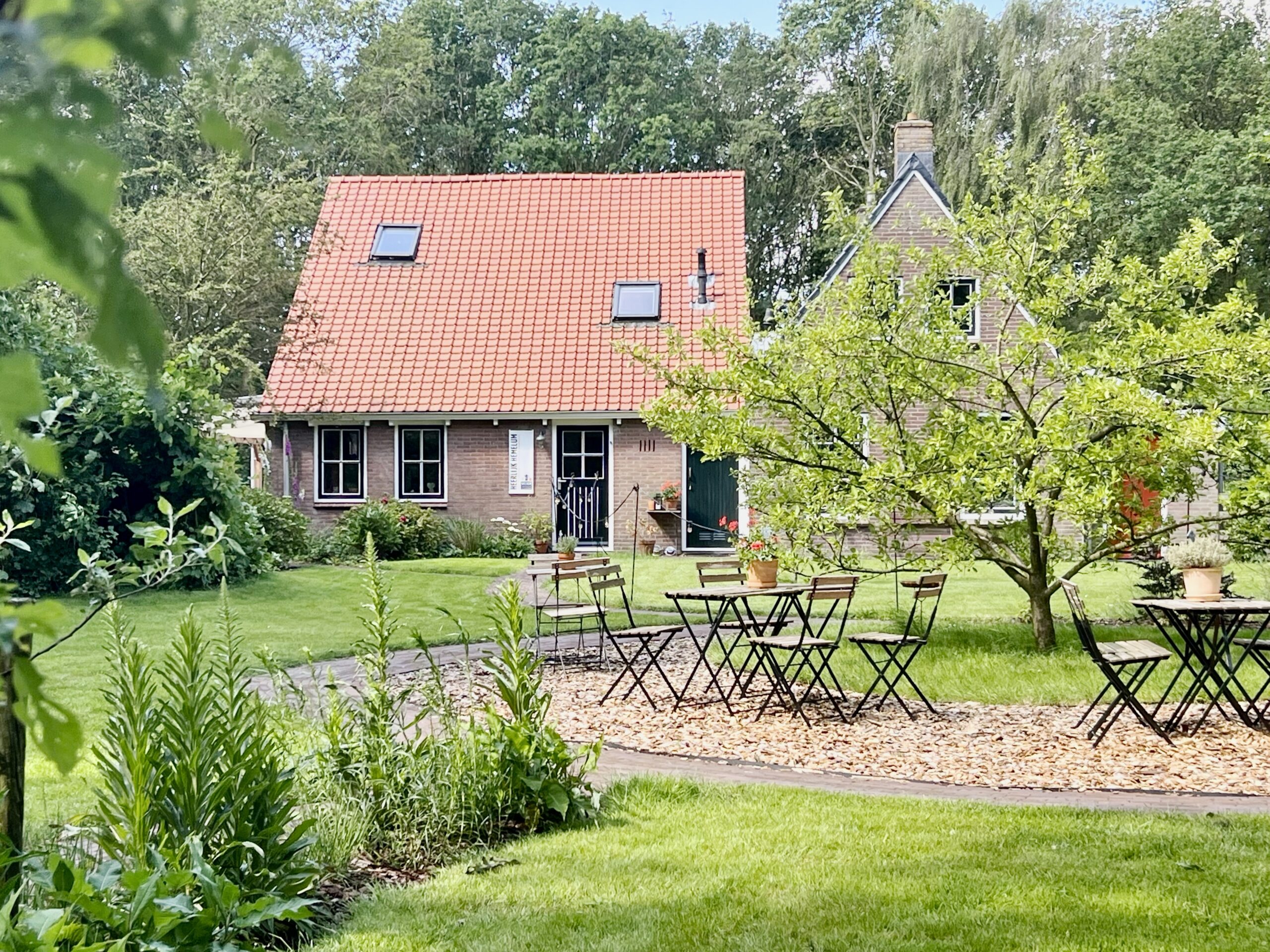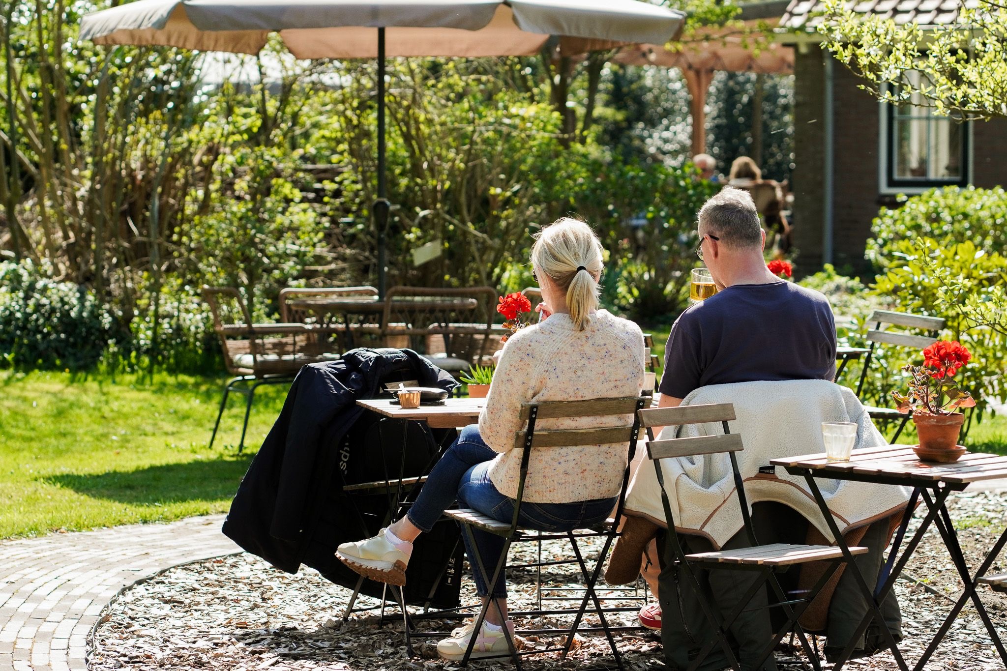 Kom alleen of samen met je gezelschap en kies een mooi plekje ergens op het lommerrijke erf of op het overdekte terras. Vind je het buiten te fris? Kom dan gezellig naar binnen. Plof neer op de loungebank of schuif aan een van de tafels in de sfeervolle tussenruimte. Hier kun je een praatje maken met andere gasten, inspiratie opdoen of het uitkrantje lezen op zoek naar leuke activiteiten in de regio…