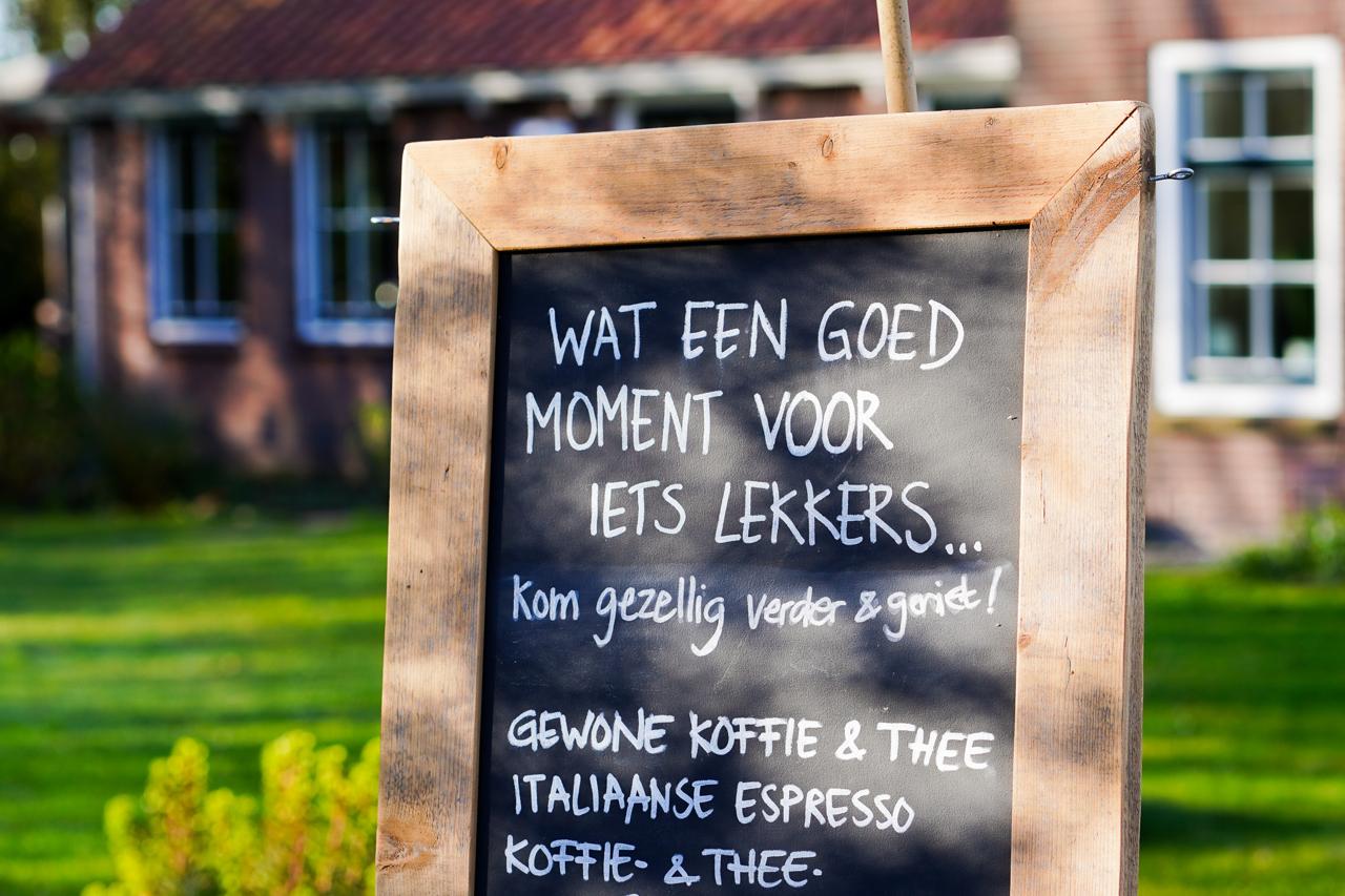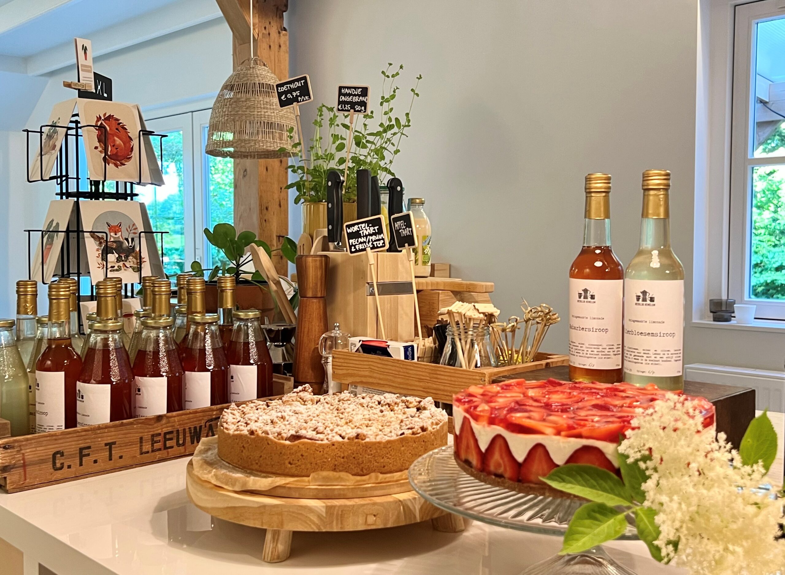 Je kunt bij ons genieten van (h)eerlijke koffie, smaakvolle thee en huisgemaakte limo van vlierbloesem van eigen erf. Liever iets fris of een alcoholvrij pilsje? Dat is er ook.